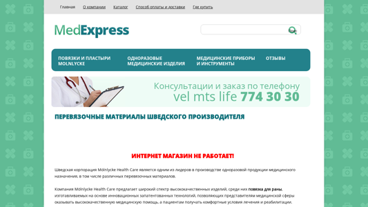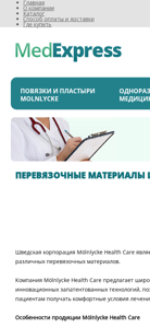 | AI-анализ | --- The web project "Medexpress.by" is an online store selling bandages and plasters from the Swedish manufacturer Mölnlycke Health Care. Customers can also buy Mepiferm dressing on the site. Keywords associated with the project include 'bandages for wounds', 'plasters to buy', 'medical materials', and 'dressing'. The top words in the project text are 'wounds' (7 occurrences), 'Mölnlycke' (7), 'health' (7), 'care' (7), and 'company' (4). Mölnlycke Health Care is a leading Swedish corporation in the production of single-use medical equipment, including various medical bandages. Their high-quality products, such as bandages for wounds, are made using innovative patented technologies, enabling healthcare professionals to provide high-quality medical assistance, while patients receive comfortable healing and rehabil |