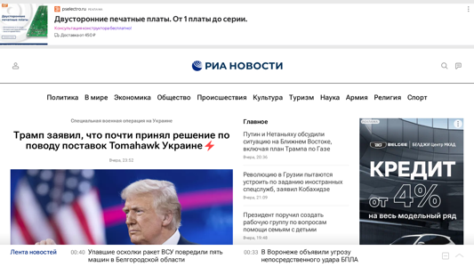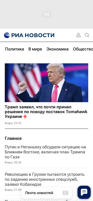 | AI-анализ | --- The website RIA Novosti provides the latest news in Russia and around the world, with a focus on operational information, thematic analysis, and investigative journalism. It features photos and videos from the scene of events, infographics, a radio broadcast, and podcasts. The topics covered include politics, economy, society, accidents, culture, tourism, science, army, religion, and sports, as well as a special section on the ongoing military conflict in Ukraine. The front page frequently reports on international developments, such as statements from political leaders and events in various parts of the world. The keywords associated with the website include 'yesterday', '2025', 'ria', 'news', 'send', 'yesterday', 'russia', 'russian', 'all', 'october', 'trump', 'your', 'ukraine', 'personal', 'data', 'required', ' |