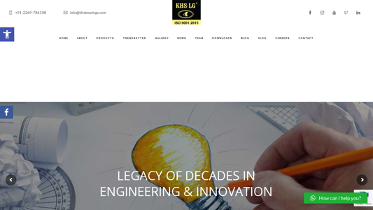| AI-анализ | language: en This online resource, titled "Top Bearing Manufacturer in India - KHS-LG," provides information about a leading bearing manufacturer in India, KHS-LG. The website offers a range of bearing solutions for various industries, including taper roller bearings, spherical roller bearings, deep groove ball bearings, miniature ball bearings, and cylindrical ball bearings, among others. With over 50 years of experience, KHS-LG has established itself as a reliable and innovative provider in the market, having worked with numerous companies and organizations across diverse industries. The website also mentions services related to manufacturing and automobile industries. Visitors can contact the company for inquiries or support through the provided contact information. |