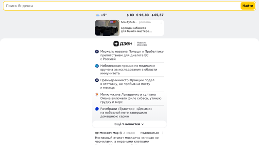 | AI-анализ | The website Dzen is a content platform where users can find content that suits their interests. Hundreds of thousands of authors daily share posts, articles, videos, and short clips on various topics ranging from gaming to travel, beauty to technology. Smart algorithms of Dzen recommend publications based on users' interests. The website covers numerous topics such as sports, show business, news, society, economy, culture, technology, and science. Some of the recent news includes Merkel labeling Poland and the Baltic countries as obstacles for dialogue between the EU and Russia, the Nobel Prize in Medicine being awarded for research in the field of immunity, the French prime minister resigning after less than a month in office, and a menu for a dinner featuring filet of siberian sturgeon, duck breast, and morse. Other topics include a review of the Dinamo soccer team's home series, the death of a Ukrain |