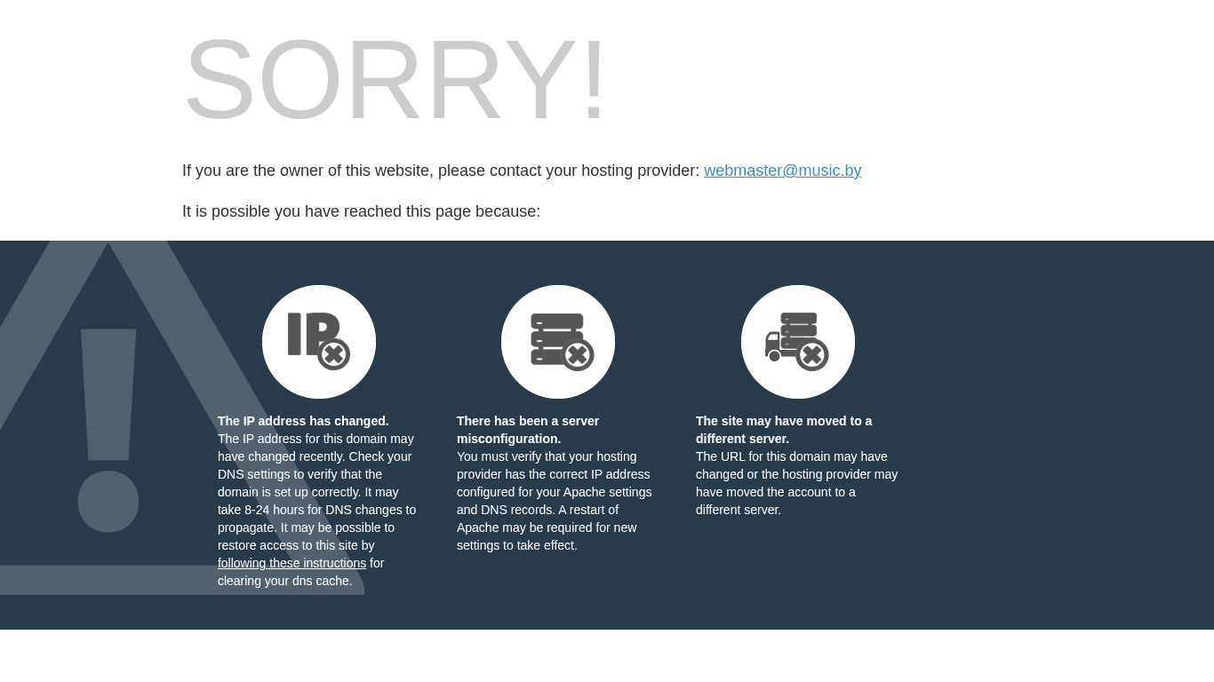 | AI-анализ | The website music.by is a default web page that informs users about a potential change in the DNS settings or server configuration for the domain. The page also provides instructions for users to clear their DNS cache and verify their Apache settings if they encounter issues accessing the site. The domain is currently experiencing a change in IP address, which may take up to 24 hours for DNS changes to propagate. Additionally, it is possible that the site has been moved to a new server or that there has been a misconfiguration with the Apache settings. The page is copyrighted by cPanel, L.L.C. |
