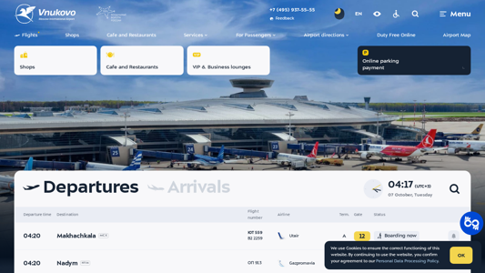 | SEO-описание | To find out exact arrival and departure times, visit the Vnukovo International Airport online flight schedule. |