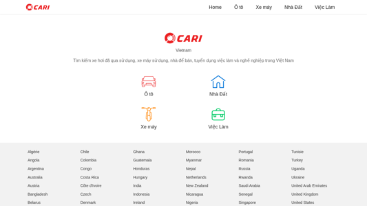 | AI-анализ | The web project cari.vn is a search engine for used cars, motorbikes, real estate, jobs, and professions in Vietnam. Users can navigate the website through the menu, which includes sections for cars, motorbikes, real estate, jobs in various countries, and a homepage. The top words on the website include 'united', 'qua', 'tuy', 'ngh', 'nghi', 'trong', 'nam', 'home', and 'vietnam'. The domain is registered in Belarus. |