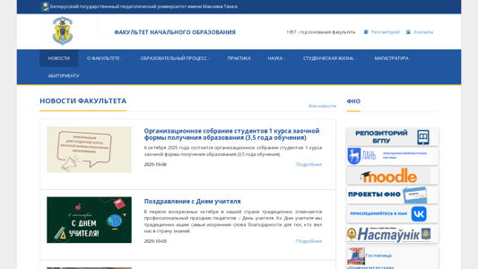 | AI-анализ | This online resource is dedicated to the Faculty of Primary Education at the Belarusian State Pedagogical University named after Maxim Tank. The university was established in 1957. The faculty was founded in the same year. The website provides information about the educational process, specialties, schedules, and various educational initiatives. It also features news, student achievements, and international collaborations. The faculty offers both daytime and distance learning options. There are also sections for academic publications, student life, and organizational matters. The website includes information about upcoming events, such as an organizational meeting for students in the distance learning program on October 6, 2025. Additionally, there are sections for student resources, such as a scientific student society and research laboratories. The website also includes a lingual club and a volunteer organization. The faculty offers a master's program and has a proactive approach to student |