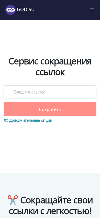 | SEO-описание | Сократите длинный URL абсолютно бесплатно и без лишних действий Goo.su. Укоротить длинную ссылку очень просто с помощью сервиса скоращения урл |