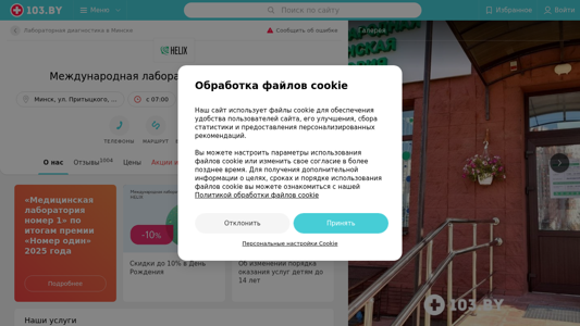 | SEO-описание | Международная лаборатория HELIX (ХЕЛИКС) Минск ул. Притыцкого, 97, Пункт Б – телефоны, время работы, отзывы и схема проезда в каталоге медицинского портала 103.by. |