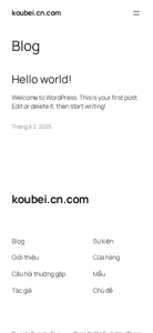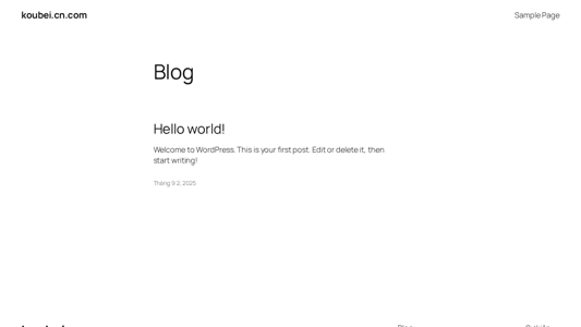 | AI-анализ | The portal koubei.cn.com is a WordPress blog with the title "Hello world! Welcome to WordPress. This is your first post." The website primarily consists of a single blog post, which introduces the platform and provides instructions for editing and deleting content. The blog post was last updated on September 2, 2025. The website also contains information about the Twenty Twenty-Five theme used for the design of the blog. No keywords or top words could be identified beyond common WordPress and blog-related terms. |