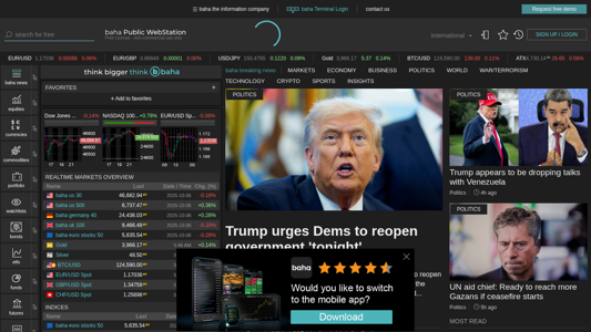 | AI-анализ | The web project "Baha Breaking News" (baha.com) is an international news platform that aggregates news from various sources, offering filtering options by region and markets. Keywords associated with the website include news, overview, search, filter, market reports, companies, markets, regions, analysis, and director dealings. The website is part of "Baha the Information Company," a leading provider of real-time market data, financial news, technology, and solutions for the financial industry. Baha offers real-time data terminals for professionals, global financial market data covering over 12 million financial instruments on more than 150 exchanges, and 24/7 breaking news with global coverage. The company was founded in 2021, joining an elite group of providers including Reuters (1851) and Bloomberg (1981). Baha WebStation, a |