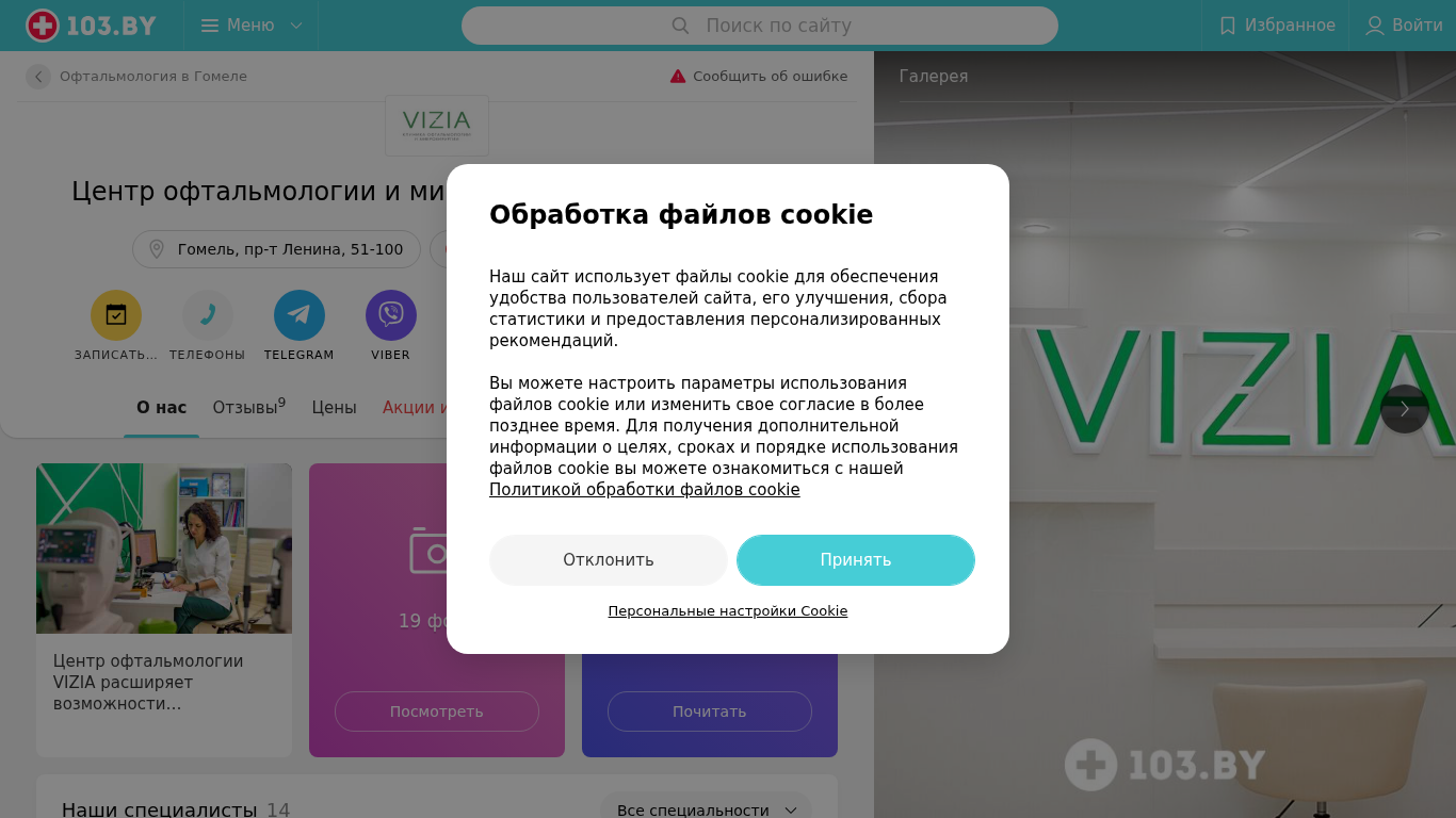| SEO-описание | Центр офтальмологии и микрохирургии VIZIA (Визия) Гомель пр-т Ленина 51-100 – телефоны, время работы, отзывы и схема проезда в каталоге медицинского портала 103.by. |