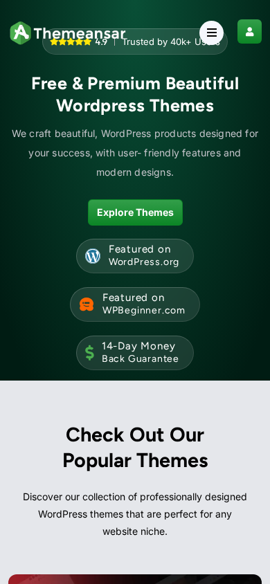 | AI-анализ | language: en The web project "Premium & Free WordPress Themes | ThemeAnsar" is a website dedicated to providing both free and premium WordPress themes. It is evident from the title and the description that the primary focus of the site is on WordPress themes. The site offers a range of themes for various niches, some of which are featured and popular. The description also mentions WordPress services, but the specifics of these services are not provided. The site is trusted by over 40k users, according to the text. The language of the site is English. |