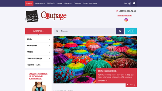 | SEO-описание | Зонты и зонтики в Минске по приятным ценам. ☑ Большой выбор зонтов от дождя. ☑ Большой выбор моделей и расцветок. ☑ Доставка по всей Беларуси. ☑ Звоните +375 (29) 691-74-35. |