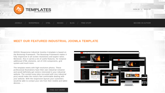 | AI-анализ | This online resource is a marketplace for buying and selling WordPress, Joomla!, and HTML templates. Users can browse and preview professional themes for these content management systems, including Joomla! Templates and Wordpress Themes. The website also offers ecommerce templates, Virtuemart templates, and Joomla and WordPress templates. The site features a large selection of items, with 181,478 active members and 926,292 downloads. The template "Responsive Industrial Joomla 4" is highlighted, which is based on the Bootstrap Framework and includes features such as high-resolution photos, industrial illustrations, and a responsive layout. The site also has a section for users to become authors and sell their own templates. |