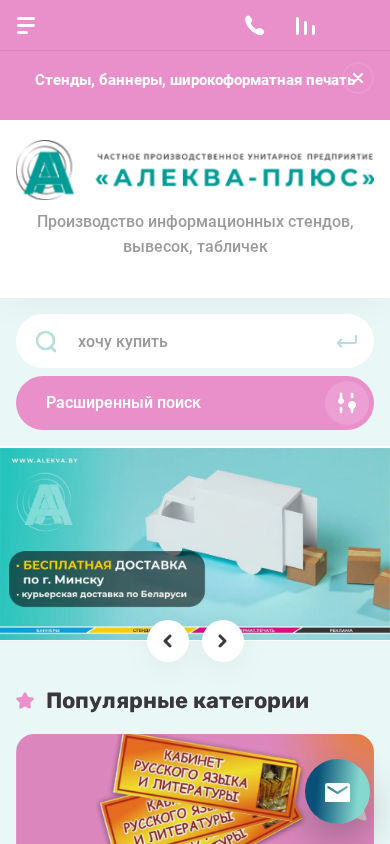| Название / Заголовок | Производство информационных стендов, вывесок, табличек - ЧПУП Алеква-плюс |
