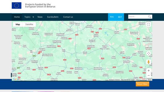 | AI-анализ | The portal euprojects.by is an interactive map showcasing European Union-funded projects in Belarus. Users can navigate the map using touch gestures and keyboard shortcuts. The map is divided into regions and districts within Belarus and displays various project categories such as Green Economy, Energy, and Private Sector Development. Each region and district can be toggled on or off, and users can explore projects within each category by clicking on the corresponding label. The map displays information on the location, category, and name of each project. The data is provided by Google and is subject to its terms and conditions. The portal is accessible in both metric and imperial units. |