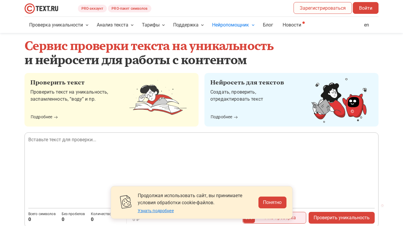 | SEO-описание | Проверка текстов на ошибки, уникальность и SEO-анализ. Нейросети для генерации статей и картинок для работы с контентом. Антиплагиат, быстрая и точная проверка документов, сайтов и контента. |
