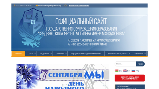 | Название / Заголовок | СРЕДНЯЯ ШКОЛА №19 г.Могилева имени М.Ф. Сафонова — СШ19 Могилев |