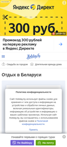 | AI-анализ | The website is a Belarusian travel and accommodation booking platform, Holiday.by. It offers various options for vacations in Belarus, including accommodations, tours, and attractions. The website provides information on over 1500 places to stay, ranging from 9.65 BYN per person, with an online booking and reservation system. Users can find and contact the owners directly through provided phone numbers. The website also includes a blog, sections for weddings and long-term rentals, and a section for tourists and tour companies to apply for access. The website features various types of accommodations, such as usadbas (country estates), cottages, hotels, and sanatoriums, with prices ranging from 350 BYN to over 1000 BYN per night. The website includes customer reviews and photos for each listing. |