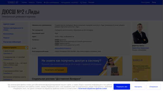 | AI-анализ | The web project "ДЮСШ №2 г.Лиды" is a Belarusian educational institution's website, represented by the domain sdjushorlida2.schools.by. The website title is "ДЮСШ №2 г.Лиды" and it uses cookies for site functionality and data collection. Users can allow or manage cookies through browser settings. The website content is in the Cyrillic script and images are turned off in black and white. The site includes information about the school, news, and a cookie consent banner. Keywords associated with the site include 'school', 'city of Lida', 'Belarus', and 'cookie'. |