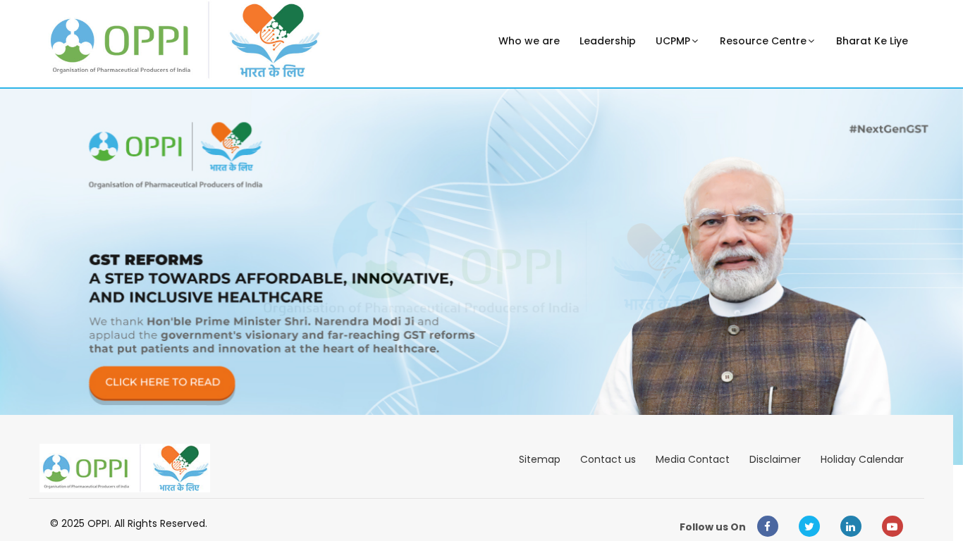 | AI-анализ | This website, titled "oppi," is the official online presence of the Organisation of Pharmaceutical Producers of India (OPPI), a trade association established in 1965 representing research-based global pharmaceutical companies in India. The site highlights OPPI's commitment to supporting India's healthcare objectives, with a focus on putting patients first and collaborating with stakeholders to find sustainable solutions. The homepage features the 'Bharat Ke Liye' campaign, showcasing OPPI's dedication to improving India's healthcare infrastructure and investing in the country's capability to solve health challenges. The site also includes information on OPPI's annual day awards, leadership, registration of complaints, tracking applications, marketing expenditure, resource centre, publications, newsletter, newsroom, gallery, and refreshing research. |
