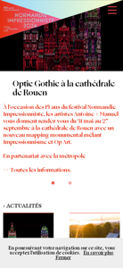 | AI-анализ | This online resource is the official website for the Normandie Impressionniste festival, a cultural event held in Rouen, France. The site invites visitors to discover various artistic offerings. With over 2 million visits during its 5th edition, the festival has attracted a large audience to its 150 events. In 2026, the festival will partner with the metropole for an Optic Gothic exhibition at the Rouen Cathedral, featuring a new monumental mapping combining Impressionism and Op Art. |