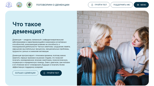 | AI-анализ | The portal "Поговорим о деменции" (Dementia.by) is a social project dedicated to dementia, developed by the BASR Organization. It offers various resources and advice for individuals and families dealing with dementia. Key topics include recognizing symptoms, research, treatment, and caregiving. The site includes a test to assess cognitive abilities, information on legal and practical matters, and video tutorials. Users can learn about the nature of dementia, its causes, and its impact on daily life. The project also offers a course for self-care and a directory of services. The goal is to create a supportive community by increasing awareness of the condition and providing access to professional help. |