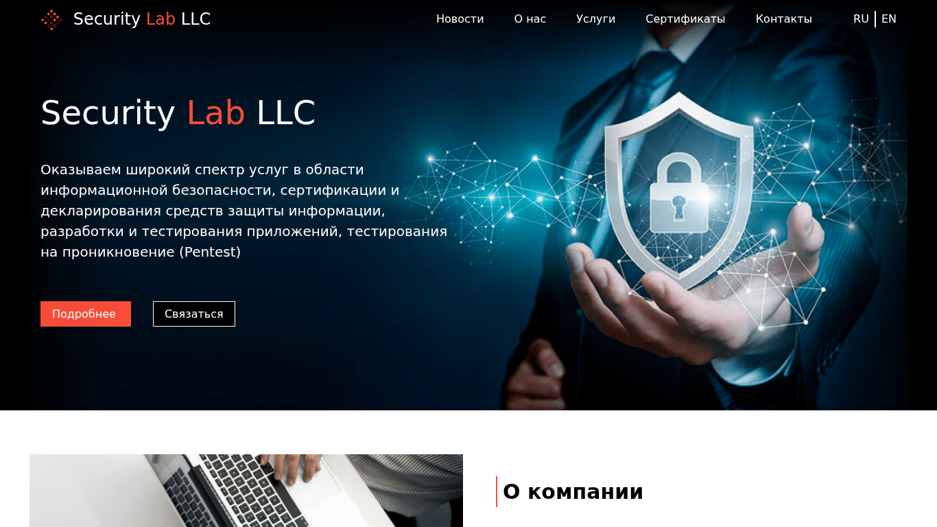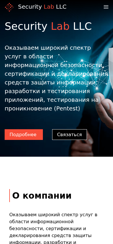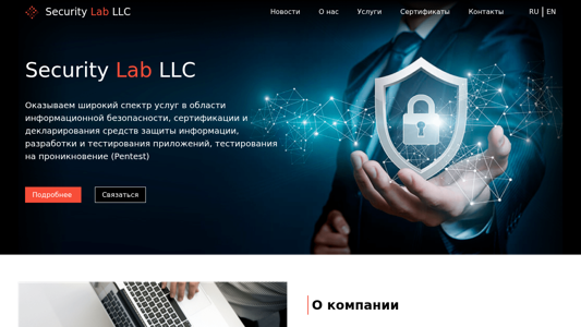 | SEO-описание | We provide a wide range of services in the field of information security, certification and declaration of information security means, application development and testing, penetration testing (Pentest). |