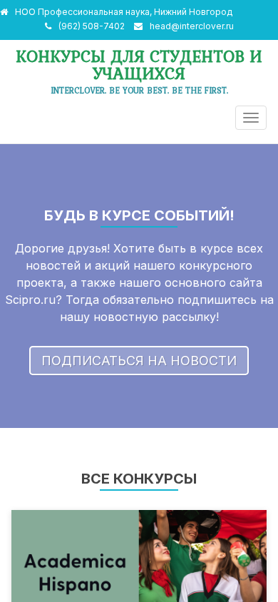 | Название / Заголовок | Конкурсы для студентов и учащихся — Interclover. Be your best. Be the first. |