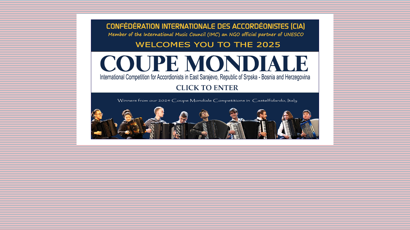 | SEO-описание | The Confederation Internationale des Accodeonistes (CIA) IMC - UNESCO are the organisers of the annual Coupe Mondiale World Accordion Championships |