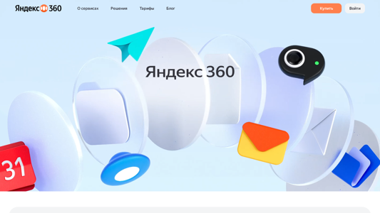 | AI-анализ | The web project "Яндекс 360" offers a full suite of cloud services for efficient personal organization: secure Email with spam and virus protection, reliable File storage, online Document editor, convenient Calendar, and more. Services include Email, File storage, Document editor, Calendar, Notes, Boards, and more for personal use; a family plan for up to 8 people; special plans for photographers; business solutions including a virtual office for teams, tools for managing work processes, and secure online services for large businesses; educational solutions for schools and universities; and more. Features include secure Email with spam and virus protection, reliable File storage, online Document editor, convenient Calendar, Notes, Boards, and more. Pricing starts at 191 RUB/month for personal use and 399 RUB/month for the year for businesses. Instructions for transferring data from other |