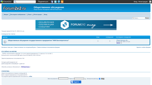 | AI-анализ | The website is a public discussion forum for the state enterprise NII Belgiprotopgas. It features a forum section with topics such as discussions, procedures of discussion, and NII. The forum includes features like last messages, latest images, search, and extended search. Users can register and log in to participate in discussions, view active topics of the day, and delete cookies. The website shows the current time and number of online users, with a distinction between registered, hidden, and guest users. The forum was last active on October 6, 2020, and there are currently no registered users. The forum is powered by phpBB and provides a free forum support service. |