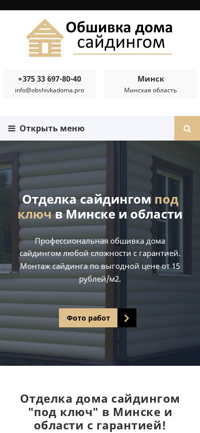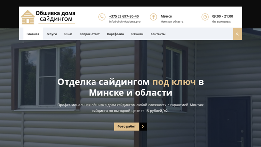 | SEO-описание | Отделка сайдингом в Минске и области под ключ. Обшивка дома сайдингом любого вида с гарантией качества. Профессиональный монтаж сайдинга по выгодной цене. |