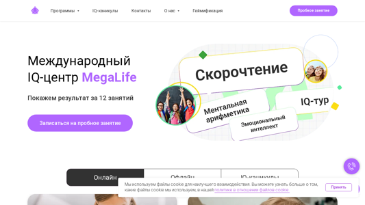 | SEO-описание | Образовательный детский центр MegaLife предлагает широкий выбор курсов по направлениям: скорочтение, ментальная арифметика, эмоциональный интеллект, робототехника, чтение с нуля. Сезонный лагерь ✔Бесплатное пробное занятие |