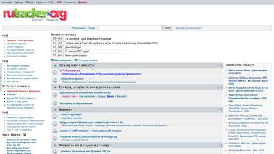 | AI-анализ | The web project RuTracker.org is the largest Russian-language BitTorrent tracker. The site offers a search engine for torrent files, which are used for peer-to-peer file sharing. The most popular content categories include video, cinema, music, games, literature, and software. Users can create and upload new torrents, and there is a FAQ section to help with common questions. The site includes rules for donations and registration, as well as information on SSL and password recovery. The site also has a forum section for various topics and a catalog of recent downloads. The project was founded in 2005 and has sections for movies, TV shows, music, books, educational materials, and software. The site also offers a solution for bypassing blocks and provides links to VPN services. The site includes a section for browsing and downloading browser and client-side online games, as well |