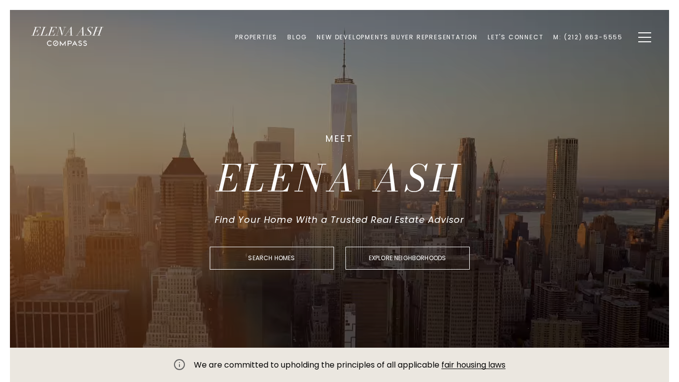 | SEO-описание | Elena Ash is a trusted real estate agent in New York City representing buyers and sellers, specializing in luxury condominiums and new developments in Manhattan. |