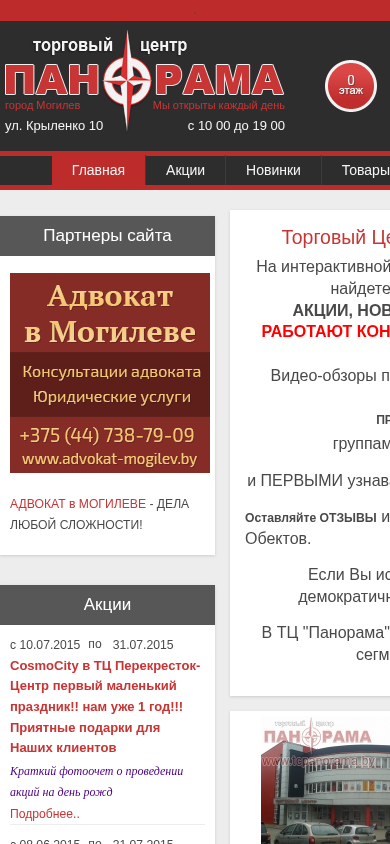 | AI-анализ | --- This online resource is dedicated to the Panorama Shopping Center in Mogilev, Belarus. The website provides information about the center, its location on Krylenko Street 10, opening hours from 10:00 to 19:00, and details about the three floors of shops. The website offers interactive maps, contacts, and login functionality. Visitors can find over 100 cozy shops, with sections for sales, news, and product and service listings. The site includes video reviews of the latest fashion collections, sales, and presentations. Users are encouraged to join the center's groups on VKontakte and Odnoklassniki for firsthand information on sales and new items. The website also features review and comment sections for individual store pages. If you're looking for good shops in Mogilev with affordable prices, you'll |