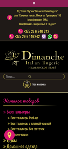 | AI-анализ | This website is an Italian lingerie store located in the Green City mall in Minsk, Belarus. The store, named "Dimanche Italian lingerie," offers a variety of bustiers, including push-up, those with a dense cup, and those without boning. Customers can purchase items with delivery by courier, self-pickup, or post. The store's hours of operation are from Monday to Sunday, 10 a.m. to 10 p.m. Online consultation and assistance from specialists are available. The store's address is Ul. Pritytskogo 156, 1st floor, in the Green City mall, with phone numbers +375 29 6 240 242 and +375 29 6 146 242. The website provides information on |
