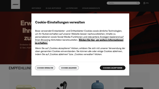 | SEO-описание | Die offizielle Bose Website. Erfahren Sie mehr über innovative Produkte, mit denen Sie mehr fühlen, mehr erleben und mehr sein können, und entdecken Sie unsere Kopfhörer, Lautsprecher, Wearables und Wellnessprodukte. |