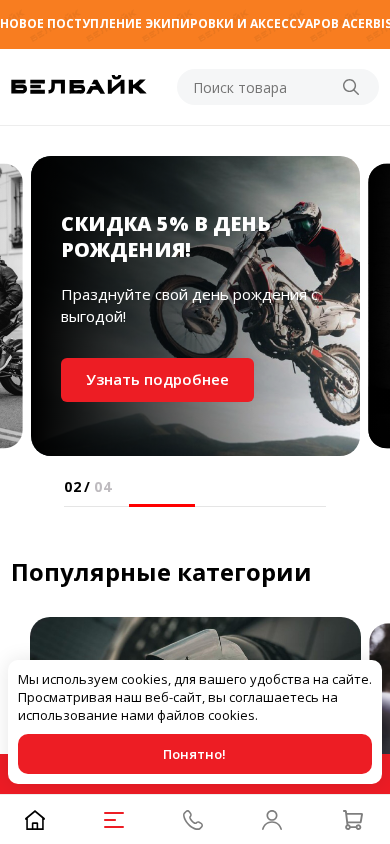 | AI-анализ | This online resource is a motorbike shop in Minsk, Belarus, named Belbaik. It offers a wide range of motorbike equipment, including helmets, jackets, boots, spare parts, oils, and accessories for sale. The shop features a new arrival section for Acerbis products. The shop's location is given as Pr. Dzerzhinsky, 11, in Minsk, with opening hours from 10:00 to 21:00. The site also mentions gift certificates, delivery, and payment options, as well as a guarantee and return policy. The shop can be contacted at +375 29 690 53 65. The site includes categories for helmets, undergarments, gloves, jackets, spare parts, oils, and various other items. Some specific products mentioned |