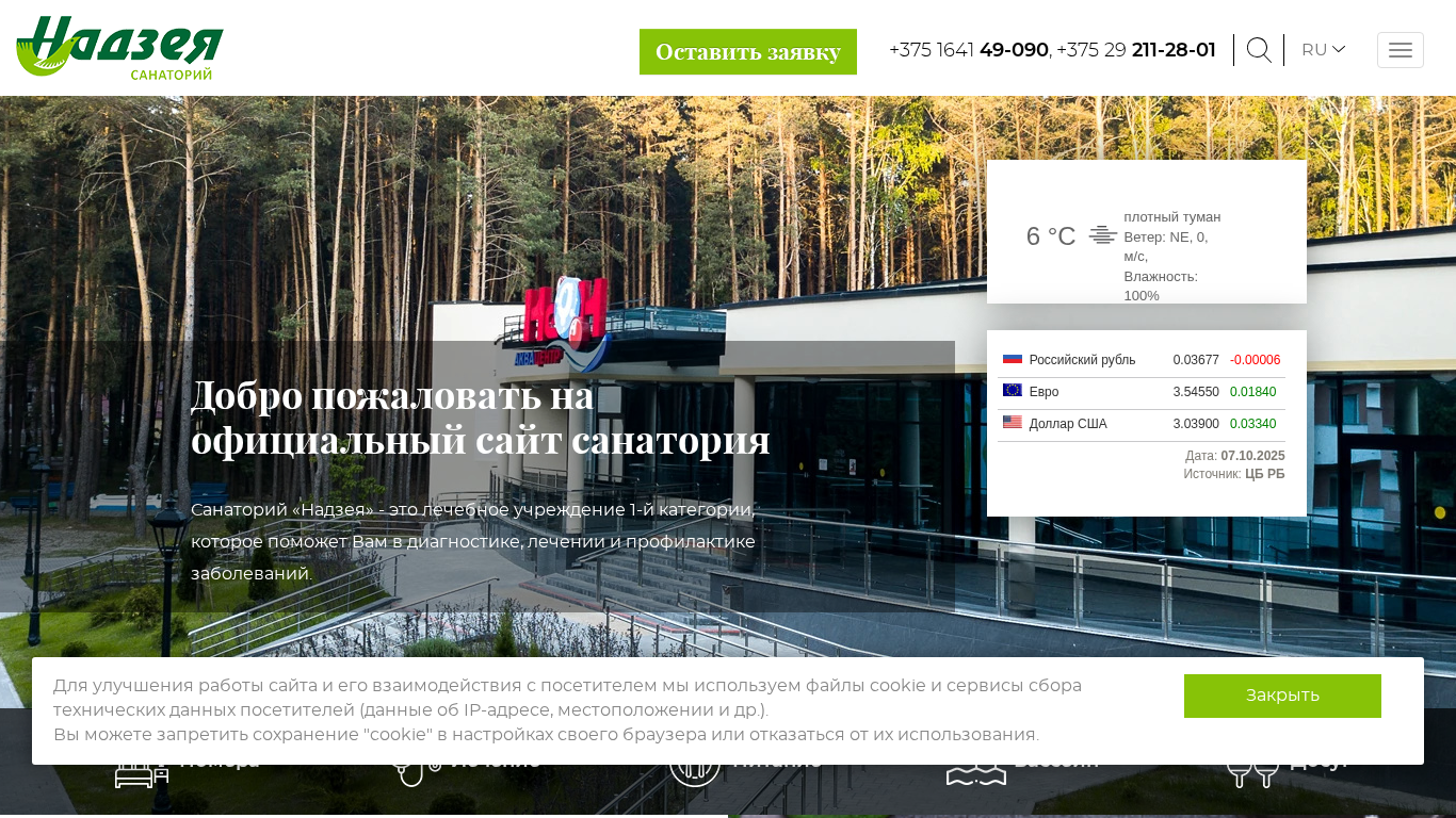 | SEO-описание | Официальный сайт санатория Надзея. Отдых, лечение, бассейн, цены и отзывы на 2021 год |