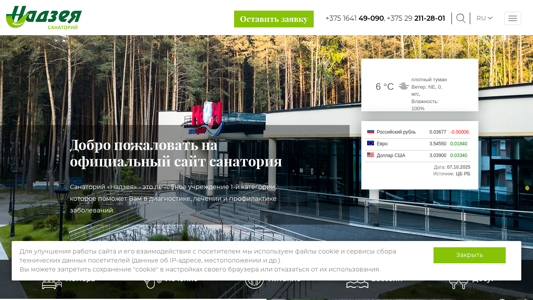 | AI-анализ | --- The portal of Sanatorium Nadzeya is the official website of the Nadzeya Sanatorium. It provides information on accommodation, treatments, swimming pool, prices, and reviews for 2021. The website offers various services including procedures, spa, transfer, children services, visa-free, excursions, rental, and vacation packages. It also features a new year program and pricing details for New Year's Eve celebrations. The contact information is provided for booking and inquiries. |