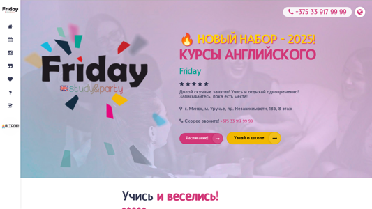 | SEO-описание | 🎉 Friday - курсы английского в Минске, метро Уручье! От 149 руб! Группы для начинающих, взрослых, подростков. Записывайтесь! Учитесь и веселитесь! |