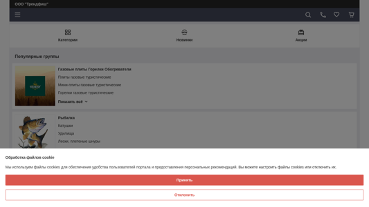 | AI-анализ | --- This online resource is the e-commerce website of Trendfish LLC, offering products for active leisure in Minsk. The website specializes in fishing equipment and accessories, including gas stoves, heaters, gas plots, fishing rods, reels, lures, thermoses, and camping gear such as tents and camping stoves. Customers can purchase items at competitive prices by contacting the company for order details. The website lists various categories, new items, sales, and popular groups. Products include gas stoves like the Tourist Sheriff TT-800 and the Super Jet TT-600, thermoses such as the Biostal NY-2, and various types of gas bottles. The website also offers winter clothing, headgear, and camping equipment. The site is developed on the Deal.by platform and provides information on delivery and payment methods, contact details |