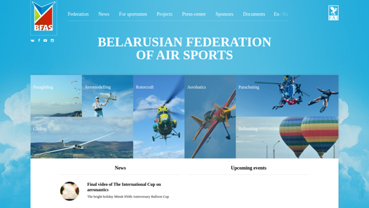 | AI-анализ | --- The portal EN.BFAS is dedicated to the Belarusian Federation of Air Sports. It provides news, upcoming events, and information about various air sports such as paragliding, aeromodelling, gliding, rotorcraft, aerobatics, and parachuting, as well as ballooning. The website is an active member of the Fédération Aéronautique Internationale (FAI) since 1997, and features news about international competitions and events. The website also includes sections for projects, press-center, sponsors, and documents. Notable recent events include the Minsk 950th Anniversary Balloon Cup and the Belarusian team's participation and success in the World Cup-2017 in helicopter races. Upcoming events include the Minsk International Balloon Cup and the World level helicopter |