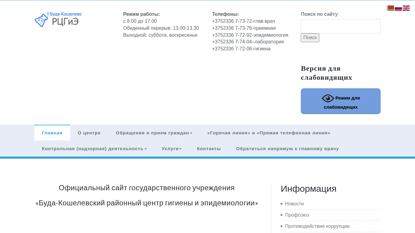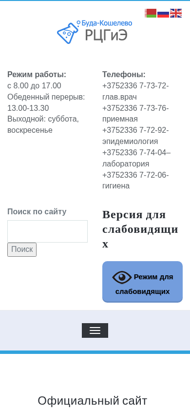 | Название / Заголовок | БРЦГиЭ — Официальный сайт Буда-Кошелевского райЦГЭ |
