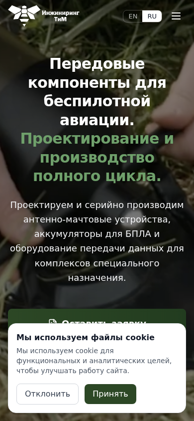 | Название / Заголовок | Производство антенных мачт и АКБ для БПЛА | Инжиниринг ТиМ |
