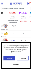 | SEO-описание | INFOPRICE — сравнение цен онлайн на товары в магазинах Минска. Акции, Скидки, Листовки, Купоны, Промокоды Беларусь. Скачать мобильное приложение в Google Play и AppStore. |
