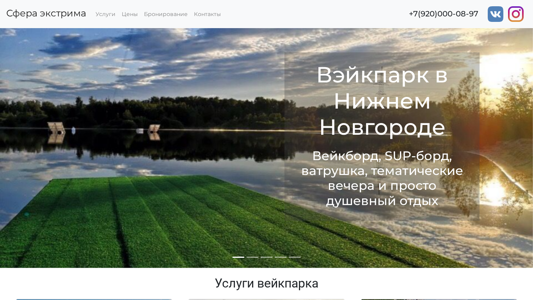 | AI-анализ | The portal Вейкпарк Сфера экстрима (Wakepark Sphere Extreme) is a recreational website offering extreme sports activities in Nizhny Novgorod, Russia. The main attraction is a 220m long reversible water slide named 'Vertigo', which allows users to ride at three different speeds. The park also features two large kickers, an 18-meter tube, and a small kicker for beginners. The website provides wakeboarding lessons, allowing users to learn and improve their skills under the guidance of instructors. Other services include a 3-person water trampoline, called a 'Vatruшка', and a stand-up paddleboard, called a 'SUP-борд'. The park offers various pricing structures, including per-minute rates and day passes, as well as personal and group training sessions. The website also features |