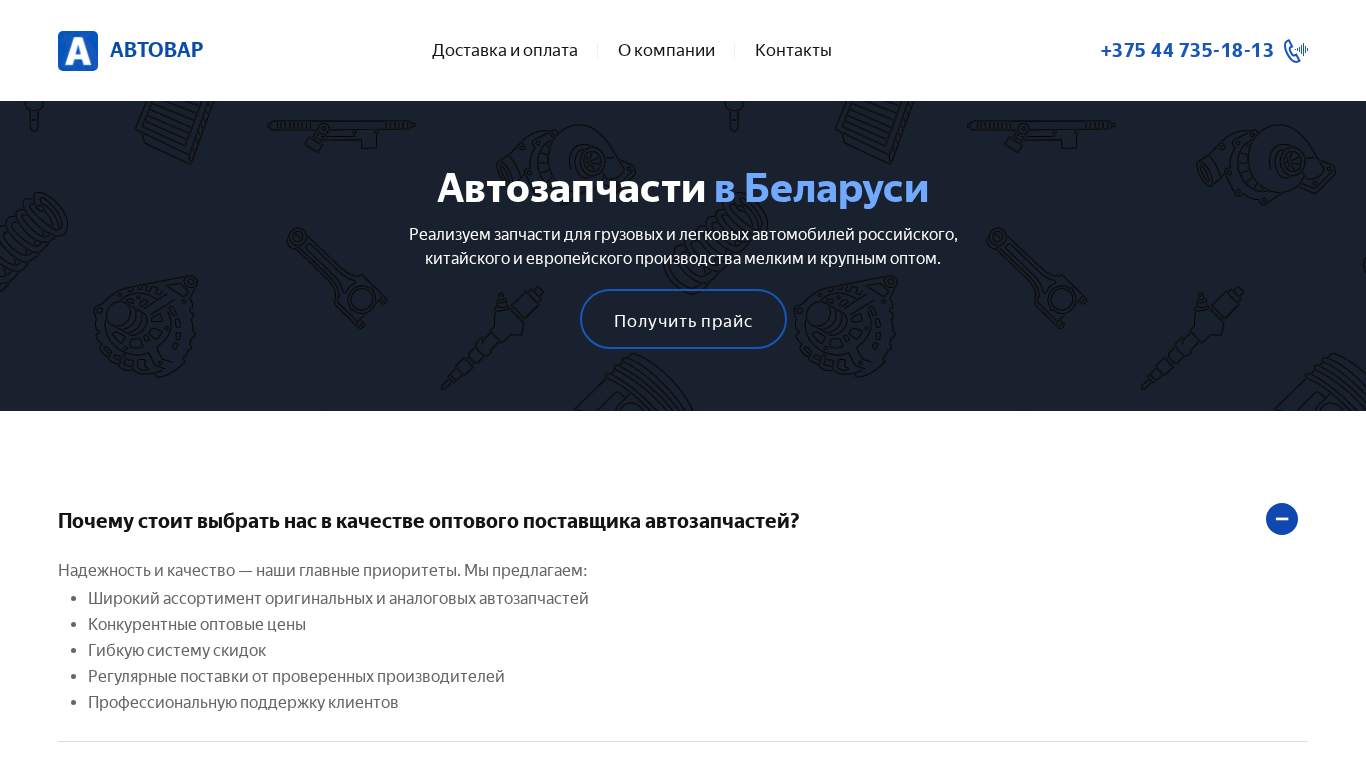 | SEO-описание | Реализуем автомобильные запчасти в Минске с доставкой по Беларуси. Для легковых и грузовых автомобилей |