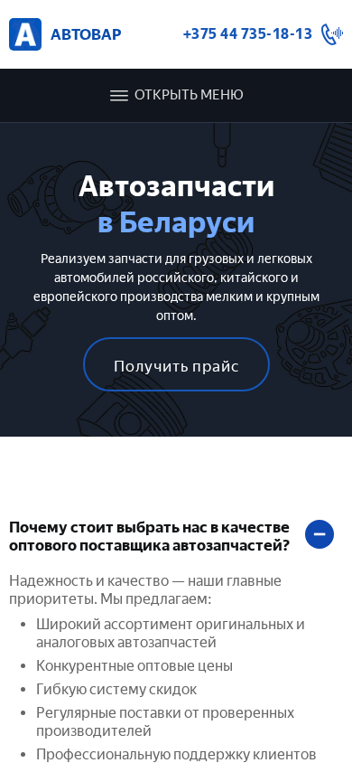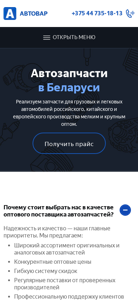 | AI-анализ | This online resource, titled "Автозапчасти в Беларуси - Автовар," is a Belarusian company based in Minsk that specializes in the sale of automobile parts. The company caters to both light and heavy vehicles, offering a wide range of original and analog parts from Russian, Chinese, and European manufacturers. The website provides contact information, including a phone number and email address, for customers to get in touch. The company offers competitive pricing, flexible discounts, and regular deliveries from proven suppliers. Interested parties can become an opt-in client by contacting the company through various means, including a form on the website, phone, or email. The company's requirements for opt-in clients include being a registered business or individual, paying by wire transfer, adhering to the terms of the agreement, and providing a valid address for delivery. As an opt-in client |