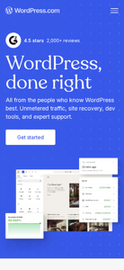 | AI-анализ | The website WordPress.com offers a platform for users to create their own websites using WordPress, with built-in hosting, premium themes, and powerful tools. The site provides various features such as WordPress hosting, WordPress for agencies, domain names, AI website builder, website builder, create a blog, newsletter, professional email, website design services, commerce, WordPress studio, and enterprise WordPress. Users can choose from different plans and pricing options. The website also offers support and resources for WordPress users. The site has received 4.5 stars and over 2,000 reviews. When creating a site with WordPress.com, users get unmetered traffic, site recovery, dev tools, and expert support. The site also offers flexible storage and global CDN for fast data transfer and performance. Users can claim their perfect domain at an unbeatable price. |